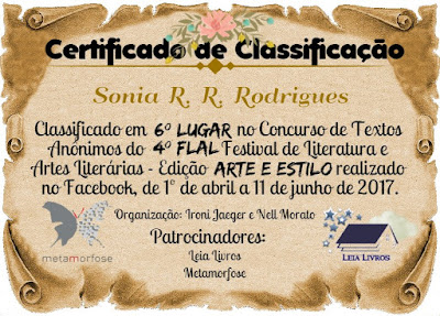 2017 - 3o lugar - Concurso Literário Aspas Duplas.